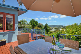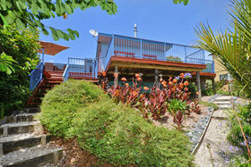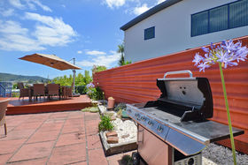 The outdoor area includes an expansive deck with great views and shaded outdoor furniture, perfect for enjoying a BBQ with your group and soaking in the late afternoon sun. The private garden is also well maintained, making for a serene setting to relax and unwind.