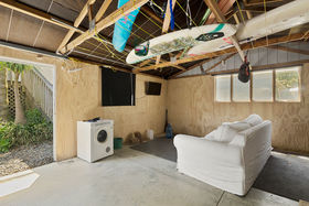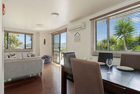 Transitioning into holiday mode is easy in this spacious home. With a bright open plan living space, an excellent outdoor setting and a well-equipped kitchen, this home has everything you need for a fuss-free family escape. The heat pump ensures year-round comfort, and the 3 cosy bedrooms with the added space of the garage turned sleepout makes this an ideal space for the kids to kick back and chill.