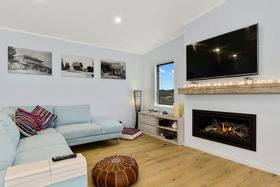 The interior of this home features open plan living on the second story, with modern decor and stylish furnishings through the living areas and bedrooms. The home is also equipped with a heat pump, perfect for keeping you and your group warm during winter stays.