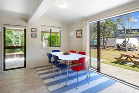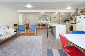 Step out the back door into a cute leafy private courtyard where you can relax and read a book. This provides access to an external laundry and another functional bathroom; a great place to wash off the sand from a day on the beach.